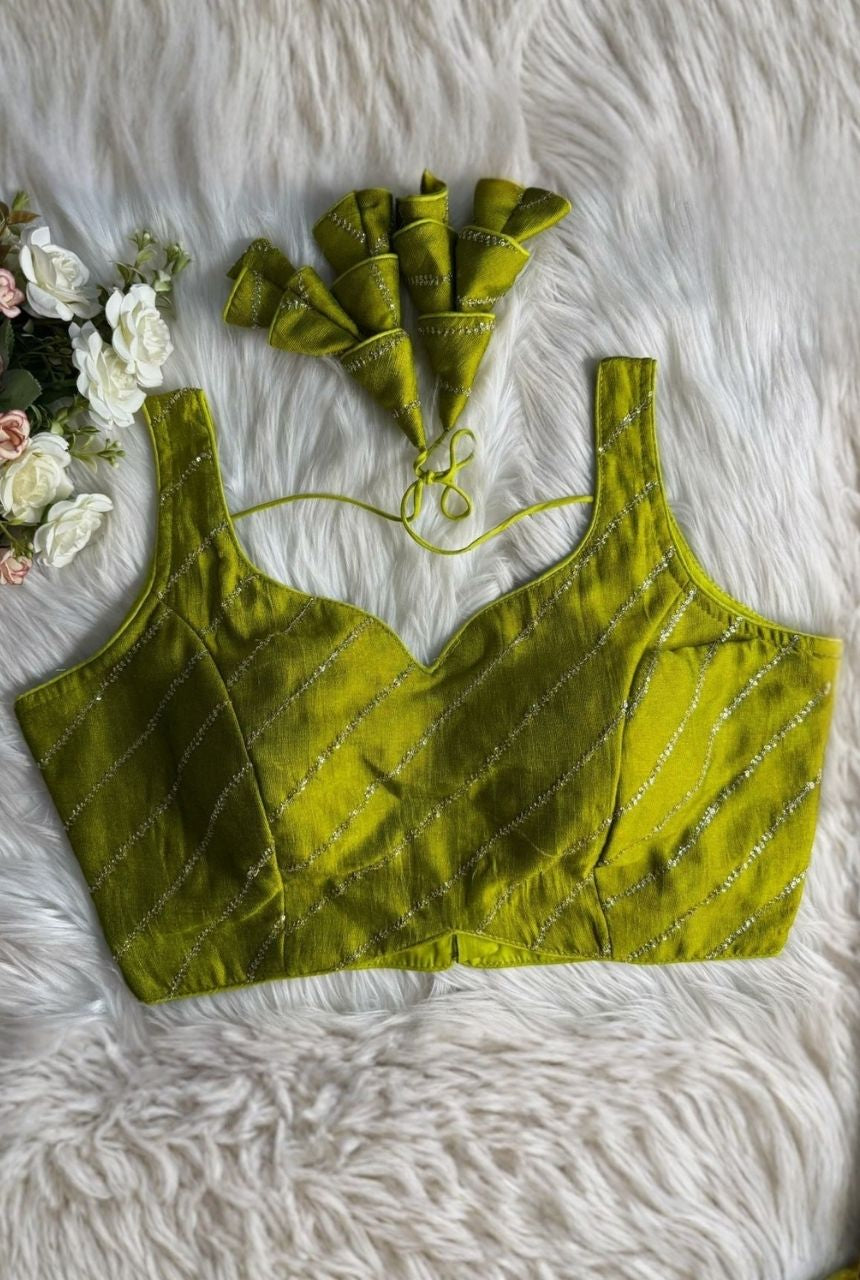 | Design | Beautiful partywear design with heavy stitching, padded finish, handmade hooks with elegant latkans, back open style |