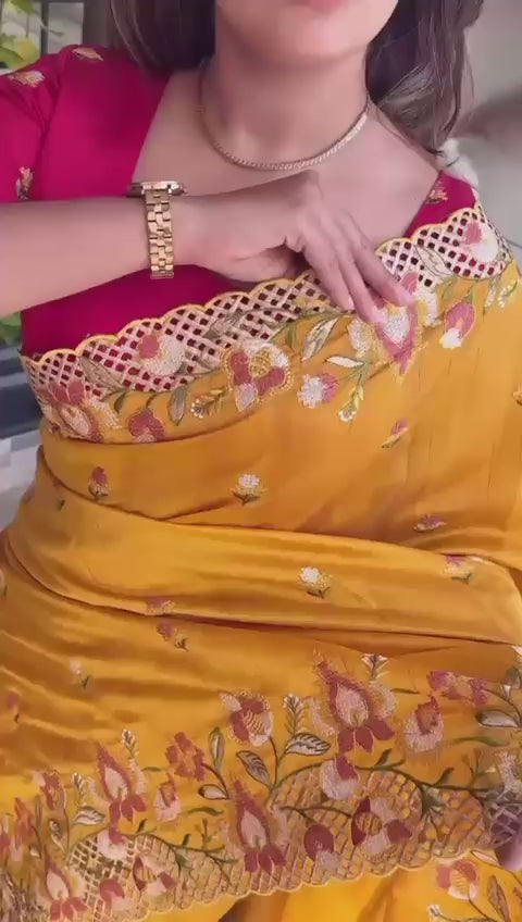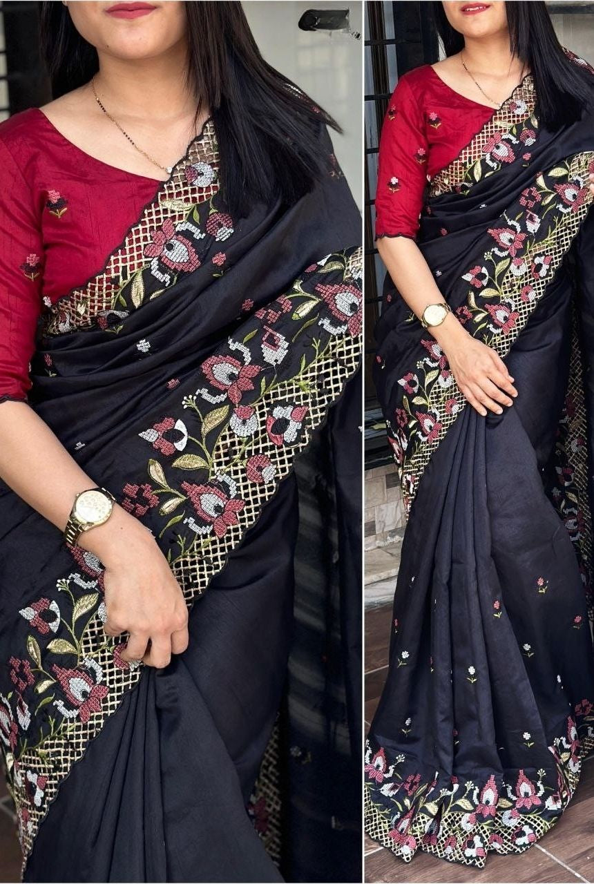 Saree – Thread embroidered work with cut work & boaring pattern Blouse – Embroidered work |
